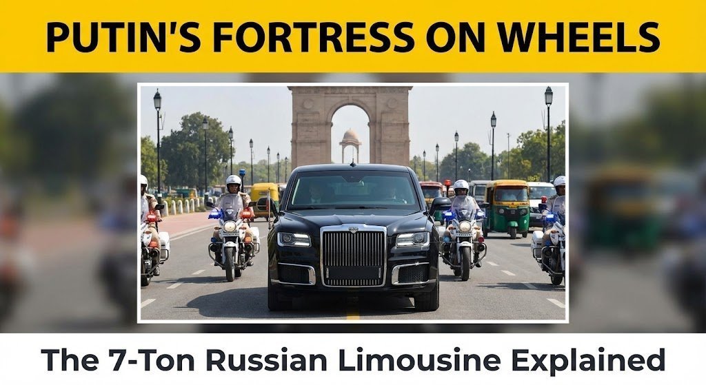 Inside Vladimir Putin’s Aurus Senat limousine. Explore the specs, VR10 armor, V8 hybrid engine, and security features of the ‘Russian Rolls-Royce’ used during his 2025 India visit.