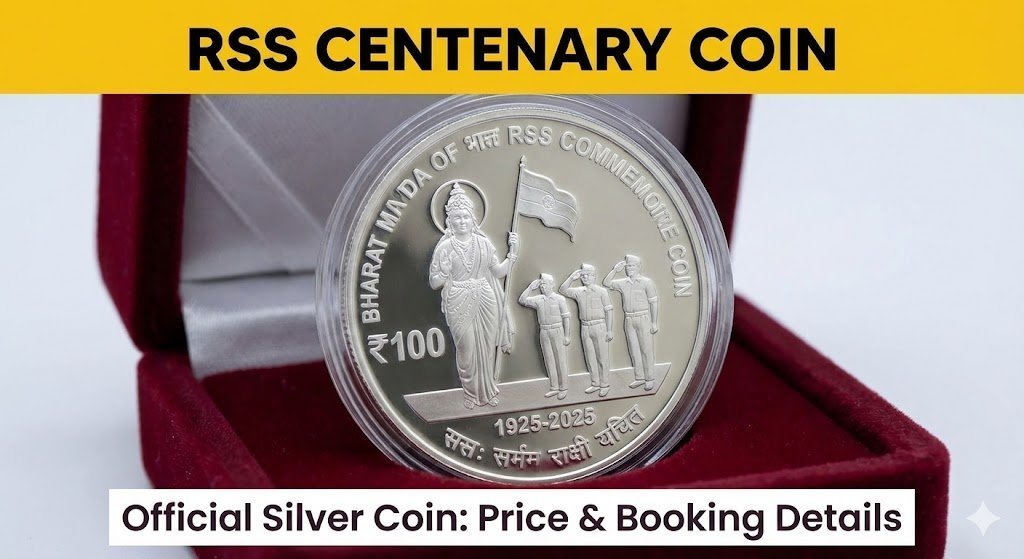 How to buy the RSS 100th Anniversary ₹100 silver coin online. Check the official price at India Govt Mint, design details featuring Bharat Mata, and booking availability.